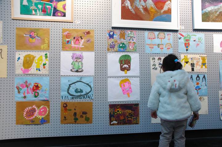 “小童心·大艺术——儿童创意玩偶设计互动”在展厅内 设置了儿童画展示区、玩偶制作区、捐赠玩偶区和互动游戏区。