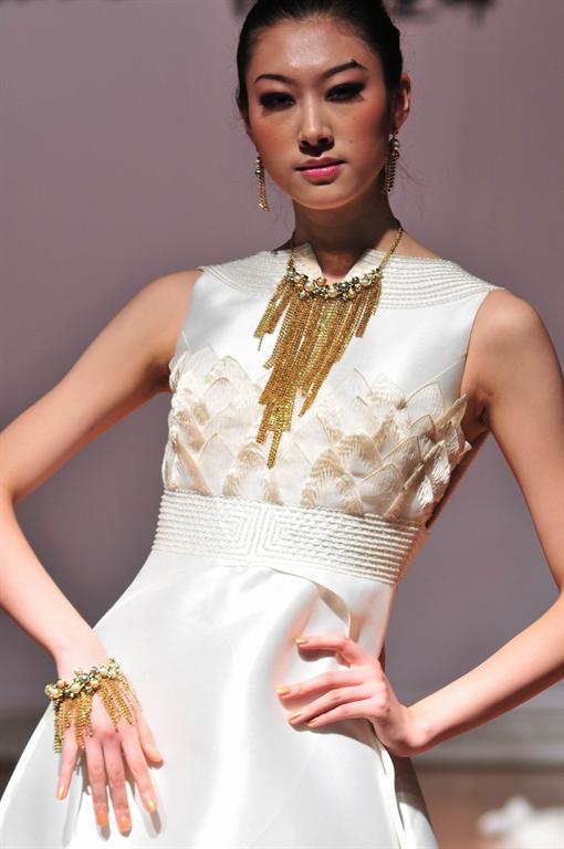 亦真亦幻的舞台灯光照射着模特们精致的脸庞,灵动轻盈的步伐配合着动听诱人的旋律,美轮美奂的设计品伴随着观众一潮接一潮的惊叹,