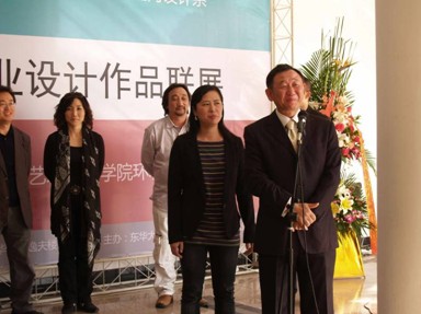 在逸夫楼一楼展厅开幕,李柯玲院长、罗仪华书记代表学院赠送了祝贺花篮。东华大学艺术设计学院副院长