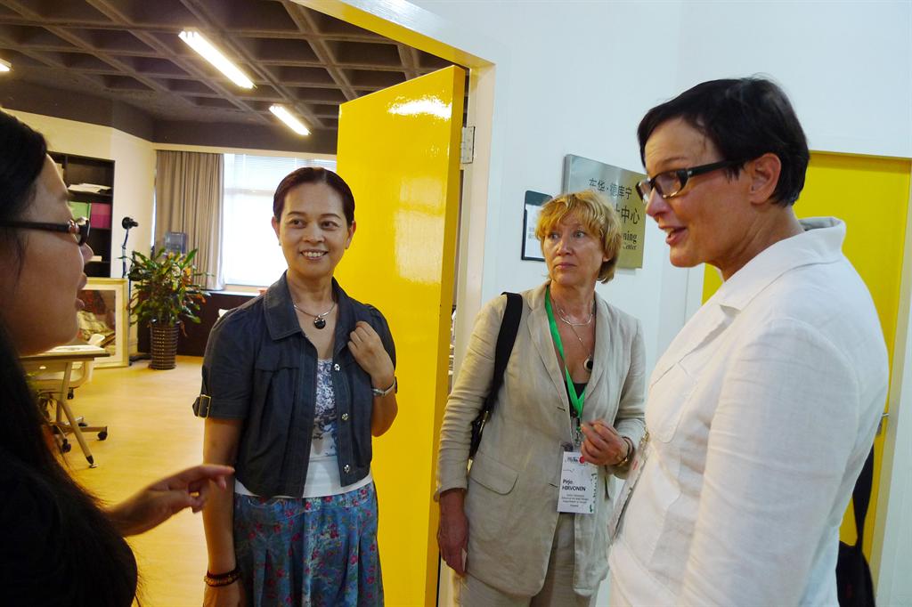 芬兰阿尔托大学艺术设计学院院长一行认真参观了我校服装·艺术设计学院各个系部,并对本院服装设计、纺织品设计、视觉传达、工业造型设计等专业的教学和科研成果表现出极大兴趣。