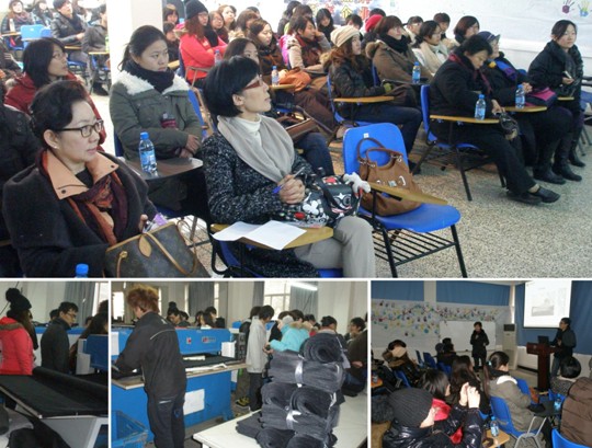 随后工业设计系副系主任俞英老师就这次比赛的具体内容及时间安排进行了详细的介绍;来自浙江卡拉扬商务休闲用品有限公司的三位设计师(陈运祥、陈于飞、王卉)通过公司现有品牌BYfree\Caarany\Ddung的介绍分别阐述了商务和休闲类箱包在设计时需要考虑的问题和要点,让大家对这次大赛的内容有了更进一步的了解。
