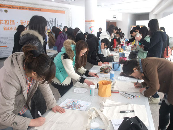 年3月16日,“卡拉扬—东华杯”箱包设计大赛的新闻发布会及环保袋现场彩绘活动在东华大学逸夫楼二楼表演厅隆重举行。纵观此次活动,有许多值得回味的亮点。
