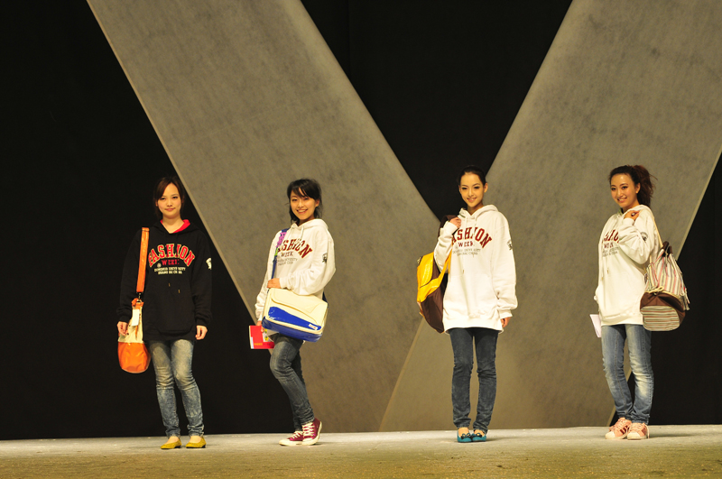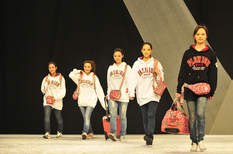 晚间7点30分整, “卡拉扬•东华杯”箱包设计大赛颁奖典礼秀正式开始,首先展现的是概念包,指向了未来箱包的发展设计方向。之后展现的卡拉扬在2011年发布的第五街道的精彩作品,伦敦雾,温莎伯爵,至上励合,斑马女生,镜栀雪,卡布其诺,龙战骑士,热带雨林,非洲风情系列共10款新品箱包的品牌秀,由此可以看出卡拉扬近年来箱包正向着实用,青春风格的趋势发展着,它的每一款箱包都是面向着学生,白领等特定的年轻消费人群而设计的。