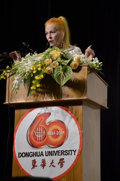 她影响了几代人,影响了几代设计师。她将时尚游离于传统与现代之间;她让摇滚有了典型的外表;她在创意中演绎着另类的性感;她将非主流文化带到高级时装的舞台。因其大胆的设计风格,被世界称为“朋克之母”,她就是薇薇安·威斯特伍德女士。她今天来到了上海,来到了东华大学。