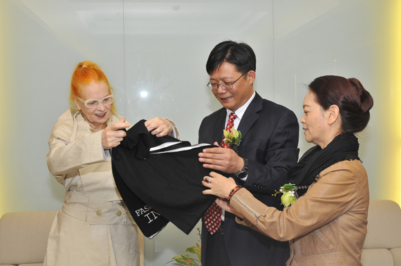 图9 薇薇安女士接受东华大学赠送礼品