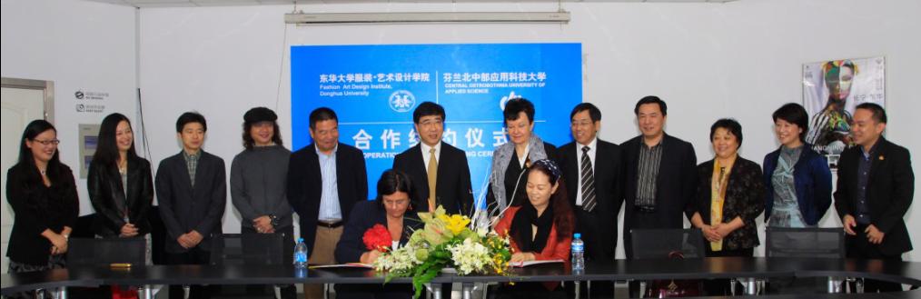 东华大学服装•艺术设计学院院长李柯玲与芬兰北中部应用科技大学商学院院长Hannele Teir代表双方学院进行了合作续约。