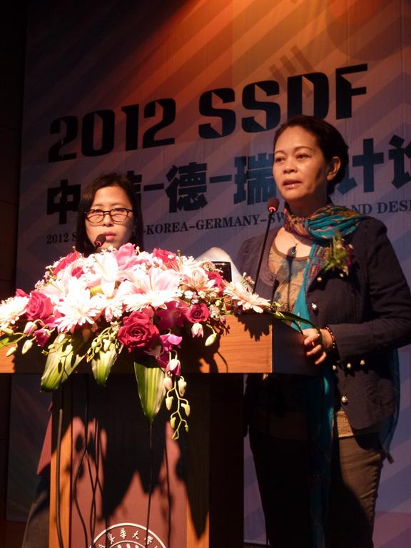 近日,我东华大学服装·艺术设计学院环境艺术设计系成功举办了由中.韩. 德.瑞四国学生和教授共同参与的“2012年SSDF循环主题国际设计周活动”,活动内容主要包括:中外学生对中国古典家具的调研考察;四国学生以循环为主题进行设计方案的交流,竞赛和展示;四国教授就家具及室内设计举行系列讲座。德国斯图加特应用技术大学、瑞士卢塞恩应用技术和艺术大学、韩国嘉泉大学、东华大学的多位教授以及韩国30名、瑞士5名、德国5名以及东华大学30名学生一同前往浙江慈溪传统家具产业参观调研,并游历体验了以朱家角为代表的典型江南水乡生活。来自4个国家6所高校共11位教授针对家具的传承与创新展开了主题演讲。整个活动以拥有不同文化背景的四国师生就设计为核心话题进行沟通交流为最终目的,得到了中外师生的热情参与。在四国教授的指导下,由不同国家学生组成的15个设计小组都成功完成了令人惊讶的设计方案,而其过程中的交流更是让四国的同学互相成为了朋友,在彼此的心中都留下了难忘的记忆。在作品汇报中,通过学生的创意方案展示,汇报,四国教授分别给学 生评出一,二,三等奖和优秀奖。文化的交流,智慧的碰撞,感情的培养,使得中韩德瑞四国的师生满心期待着下一次的交流。