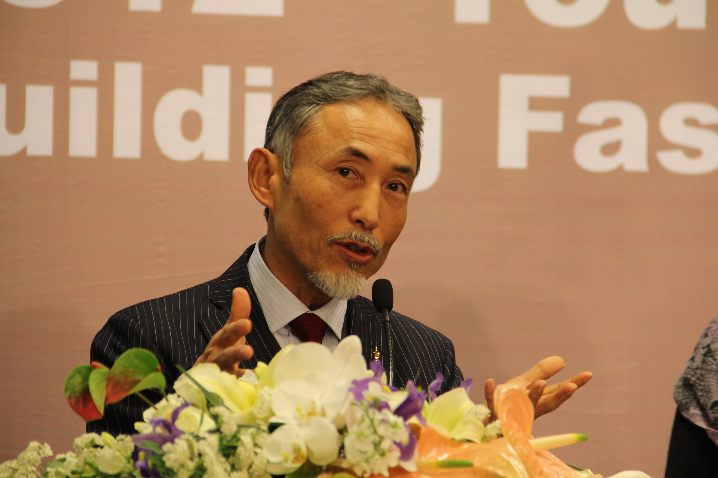 接下来,东华大学校长徐明稚先生上台做了演讲。做为时尚周的主办方,东华大学校长徐明稚教授对各位嘉宾、国际友人、各承办方的到来表达了最衷心的感谢。徐校长身兼校长和教授的双重身份,他的谈话也从管理者和学者的双重角度分别从三个方面谈了对于上海建设国际时尚之都的认识和我们为之努力的构想。