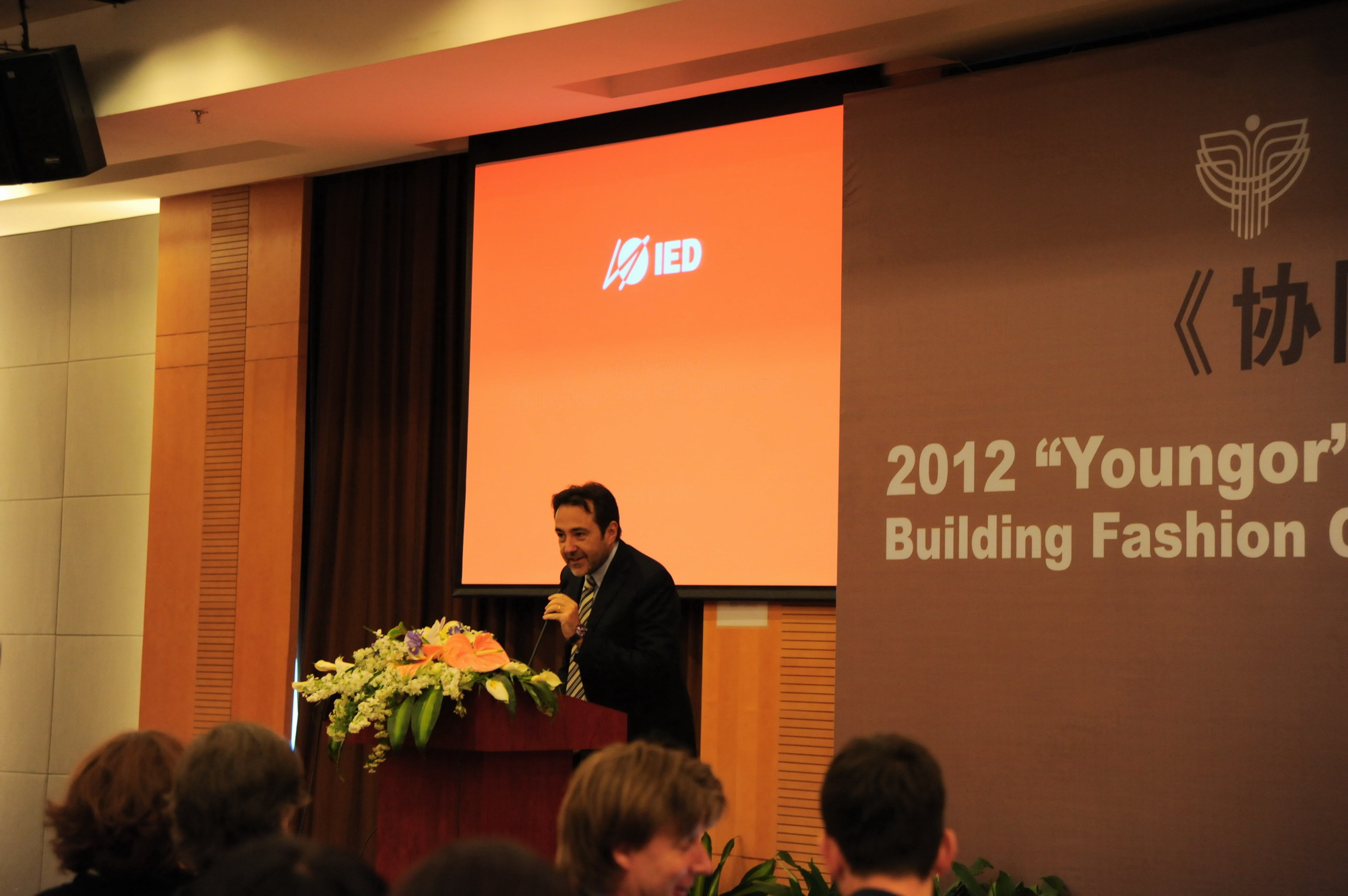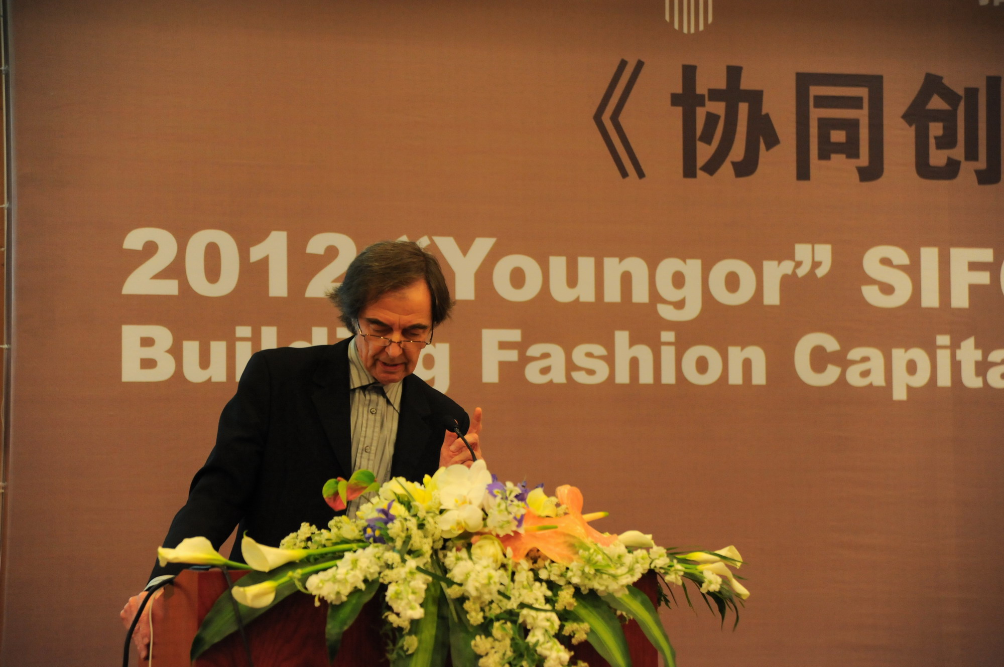 2012年4月19日下午13:30,在东华大学第三教学楼四楼报告厅进行了2012“雅戈尔”上海国际服装文化节国际服装《协同创新,共建时尚之都》论坛第二场,作为“环东华时尚周”中重要的组成部分,服装·艺术设计学院特邀四位来自世界各地时尚之都的权威人士进行学术演讲。演讲题目分别为英国南安普敦大学温彻斯特艺术学院院长Bashir Makhoul教授的《上海:从本土化和全球化建设创意之都》;力克全球教育合作项目负责人Anne-Laure Frizon女士的《培养学生基于科技的创造力和技能》;意大利欧洲设计学院IED教育集团董事会副主席Carlo Forcolini先生的《作为社会文化的设计》;以及澳大利亚新南威尔士大学美术学院院长 Ian Howard教授的《情境中的人体》。