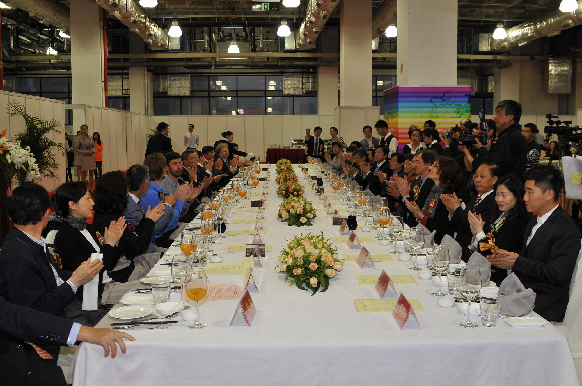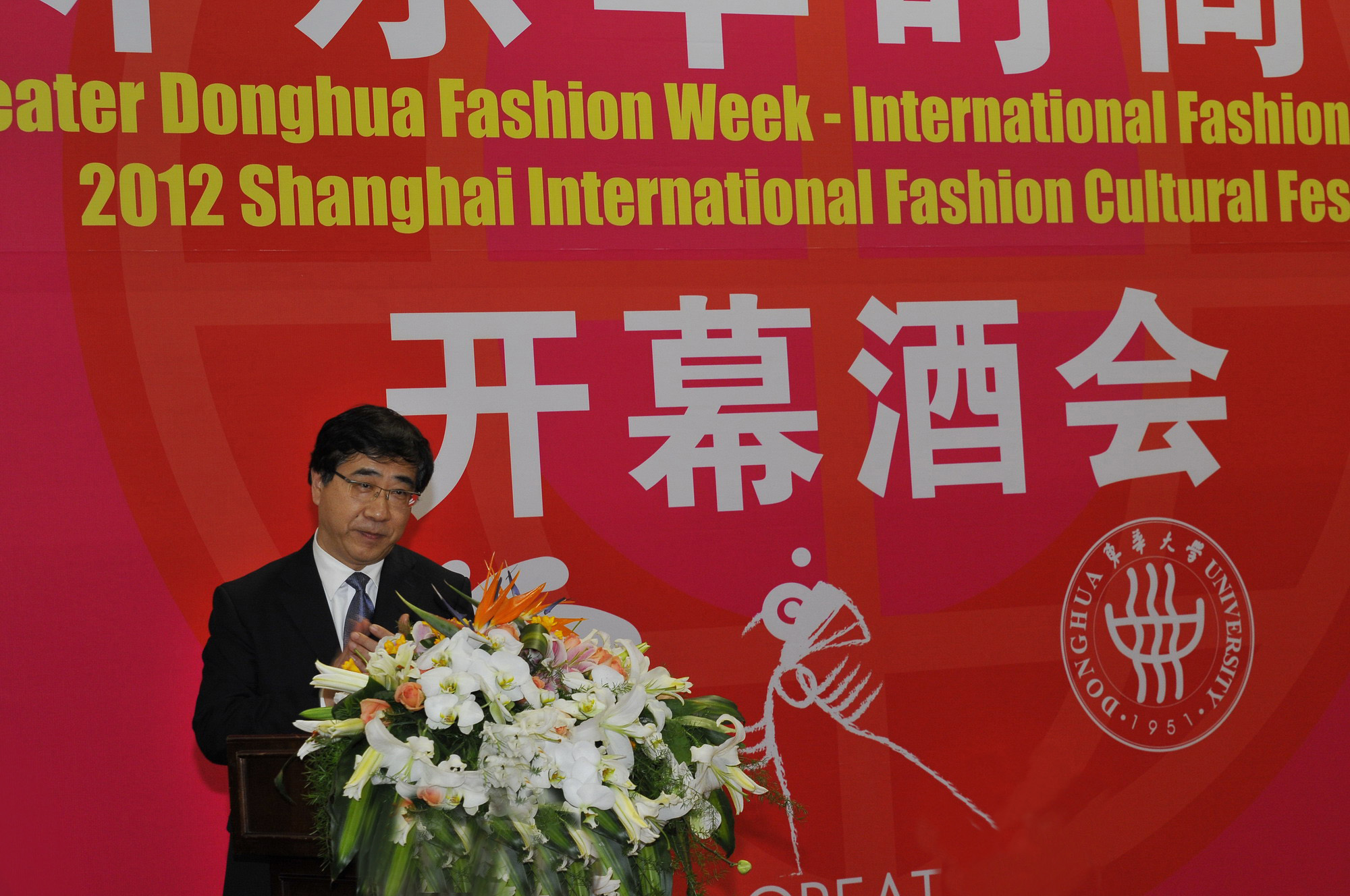 2012年4月18日17点30分,上海世贸商城四楼展厅内云集了各媒体、企业、高校、政府以及国内外贵宾,2012上海国际服装文化节国际服装论坛暨“环东华时尚周”的开幕酒会即将召开,来招待各界人士以此迎接2012“环东华时尚周”的盛大开幕。