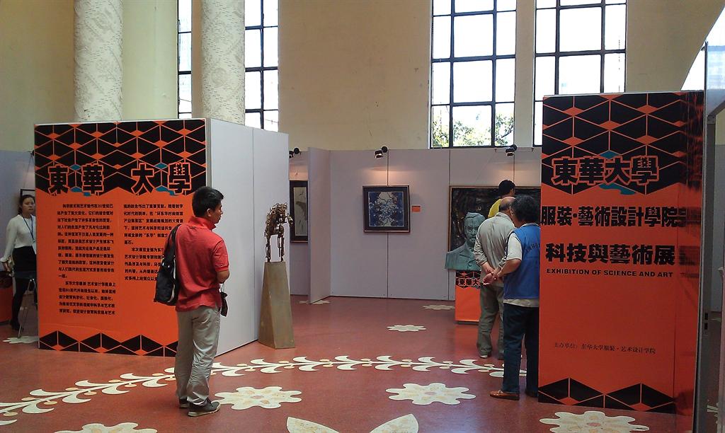 东华大学服装 • 艺术设计学院参与本次展览的教师有冯信群、胡伟达、王国安、赵强、崔齐、刘晨澍、周洪雷、李海峰、逄峰、黄小昭、江进华、刘晓东等老师,本次展览共参与教师作品 18 件作品和部分学生优秀作品,内容涉及油画、水彩、陶艺、琉璃、金属工艺等内容。