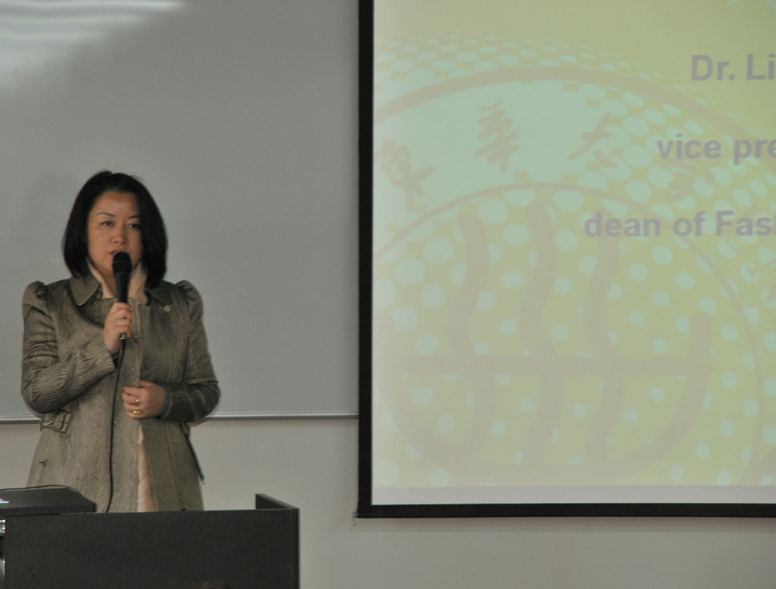 刘春红副校长首先在致辞中祝贺该班开学,并感谢三校相关人员的紧密协作和持续推动。她说,美国北卡州立大学具有学缘结构完整、实力突出的纺织服装学科群;纽约州立大学时装学院具有在时尚业界享有盛誉的服装类专业;东华大学拥有国内服装领域唯一的国家级重点学科—服装设计与工程。三校通过国际教育合作集合各自优势,在东华大学共同开设一学期全英文服装专业课程,来自三校服装专业的学生组班学习,是服装国际教育方面的一次全新尝试。对于以此平台形成国际领先的教学理念、制定国际一流水平课程体系和教学内容、建设国际一流水平师资队伍、探索国际一流水平教学管理及运行机制、培养具有国际竞争力的高层次服装专业学生将发挥重要推动作用。南希•卡西尔(Nancy Cassill)教授宣读了北卡州立大学纺织学院布兰顿•戈德弗雷(Blanton Godfrey)院长的贺信,信中期待中美文化交叉背景下这个服装课程国际班能够形成独特优势。同时来自纽约时装技术学院奇亚克莫•奥利弗(Giacomo M.Oliva)副校长的贺信也祝愿该项目能够取得成功。中美三校服装课程国际班的师生还进行了气氛热烈的交流互动,并学习了相关校园学习生活管理条例、行为规范等。