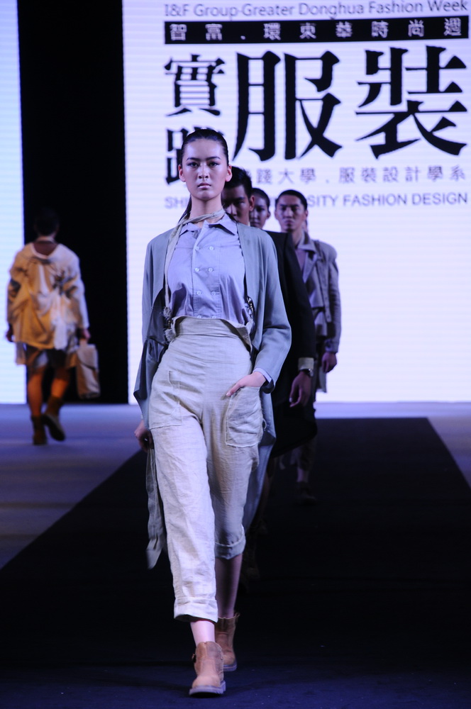 上海东华大学与台湾实践大学两所院校从今年3月份开始共同举行两校学术合作和务实多元的优质互动交流,今天的服装展演是在实践大学二三四年级的学生中精心挑选出60套代表作品来进行的,通过这次“智富•环东华时尚周”的平台两校的友谊更加深厚。