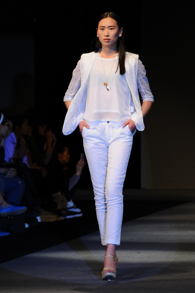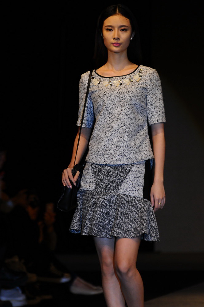 陈美玲的作品款式大多都为连衣裙,但系列中也不乏套装,她的设计一直清新,隽永,甜美自然当中透露一种坚定的优雅和高度精致,将各种图案纹样、线条和质感精致的安排在一起,以蕾丝和提花面料居多,富有逻辑的趣味性。设计师陈美龄指出,这样面料的选取是迎合了当下的流行趋势,也更加容易被市场所接受。在她的作品中还透露着一种非常年轻的女人味,这种女人味温婉而不娇媚,让人怜爱却又感觉非常独立。或许这正是她作品的魅力所在,当舒适美观大方的一步裙在T台上款款而来,又款款而去时,这种高贵的精致和高度的节制的设计无形中就征服了全场的观众。陈美龄说,这其中的一些作品如今在纳薇的品牌专卖店也有相关出售。这样,不但满足了大家秀场上的视觉享受,也让大家能够亲自体验到发布会新季作品的时尚。