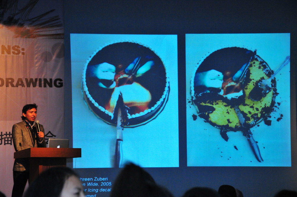 教授带来了《设计中的素描表现》的演讲。来自巴基斯坦的艺术家Abdullah Syed有着西方设计与绘画训练的经历,他的作品一直在探讨如何看待传统文化在当代艺术里的诠释,多元文化政治社会背景将给素描领域带来新鲜的视角和内容。这些素描领域内的艺术家和学者的发言,让在场的师生更加重视素描这一基础的艺术表现形式,获益匪浅。