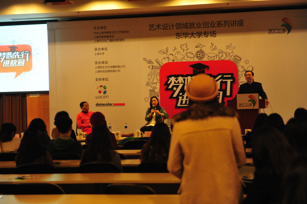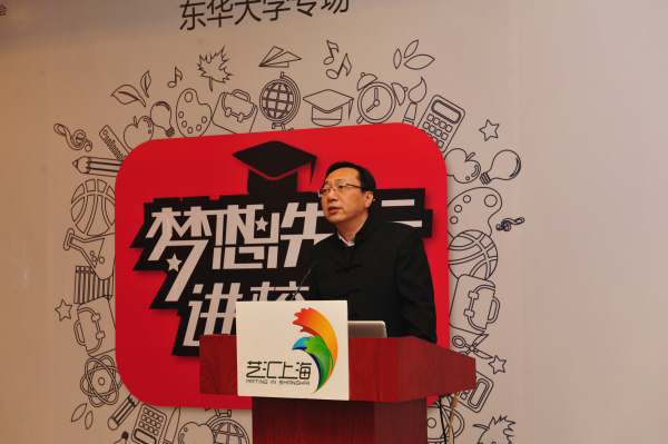2014年3月20日下午,“艺汇上海梦想先行进校园”艺术设计领域就业创业系列讲座第七场“海派时尚与设计”于东华大学举行。本次讲座邀请了设计界的前辈、中国2010年上海世博会吉祥物“海宝”领衔设计师邵隆图先生以及被评为中国最受关注的时尚领军人物、青年设计师吉承女士作为主讲嘉宾。活动由市教卫党委、市教委、市文广局主办,上海大学承办,上海悠乐文化传播有限公司、上海科技会展有限公司协办。东华大学副校长、服装·艺术设计学院院长刘春红,东华大学服装·艺术设计学院党委书记袁孟红,东华大学宣传部副部长邱登梅,上海大学精神文明办副主任王沁,上海大学美术学院党委副书记王海燕出席了本次讲座。讲座由上海纺织服饰博物馆馆长卞向阳主持。