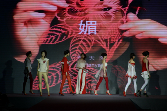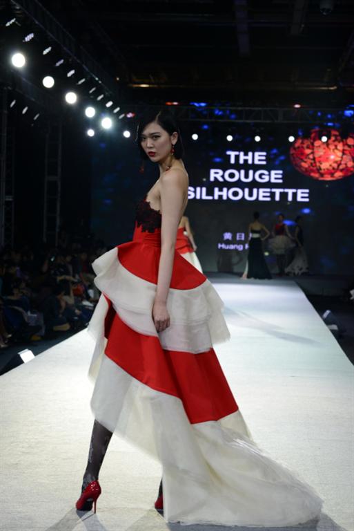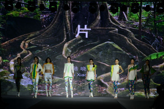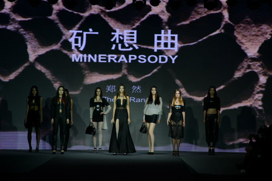 本次展演共有八位毕业设计师,每人将推出有十件服装组成的一个系列作品。第一个出场的是钟其橙同学的作品:浮雕之城。她的作品个性分明,每一件都是单独的色彩,鲜明却不突兀,整体而相互融洽,且非常具有现代感。立体的印刻正如她的主题——浮雕之城。第二个出场的是肖静雯的作品:肉蔻年华。统一的印花使作品非常具有系列感,拼接自然率真。第三个是金梦的作品:THE SYMPHONY OF GRAFFITI。鲜明的印花,明亮的色彩,整个系列青春活泼,恰到好处的拼接又使其透露出些许调皮。接下来是陆晓莹的作品:片。树根盘绕的背景图,一出场就有浓郁的自然气息,服装的主题色为白色和少许绿色,上衣素雅,下装染彩,上衣白净,下装印花,整体干净美好。其后是郑然的作品:矿想曲。一出场便是浓重帅气的重金属气息,黑色的主色调,配以镂空面料和少许亮片,勾勒出女性的性感身躯。李天阳的作品:媚,恰如其名,中国红配上白色或芽色,轻盈的透明纱织描绘出女性的柔美媚态。杨勇强的作品:云图,一如这部电影给我们带来的震撼感,女性的身躯和淡色的服装却配上防毒面具、墨镜、大型耳机等装饰,未来的科技感和作者的担忧与希望扑面而来。黄日旭的作品:THE ROUGE SILHOUETTE,用黑、白、红勾勒出的女性身躯,配以绣花的中国传统装饰方式,中国女子的媚气如绕指间。
