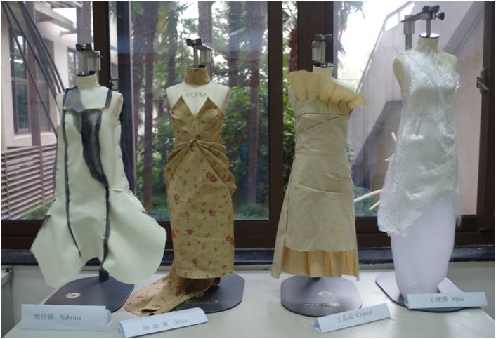 通过本次课程,学生们在Ashdown教师的引导下,突破传统思维,大胆尝试,很好地融合了款式设计与纸样设计,在原有的结构设计、立体裁剪与工艺基础知识下,通过1/2人台快速完成并制作了三个系列服装作品,提升了学生们的专业知识,尤其改变了他们的创意思维模式。