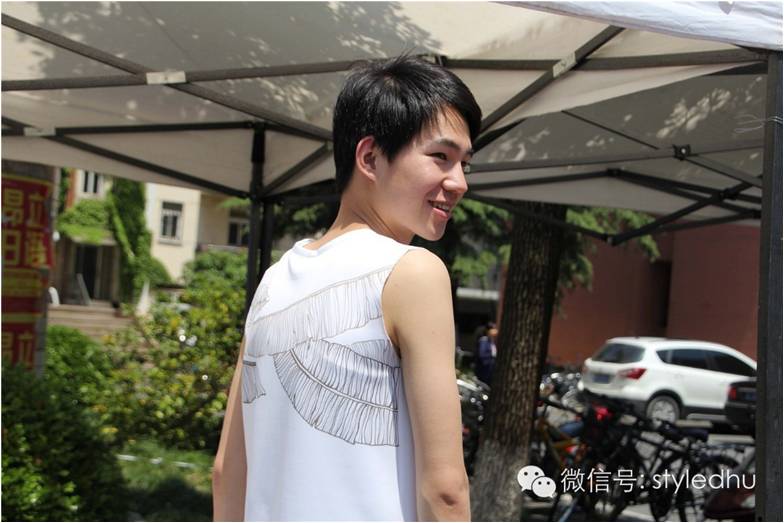 我们有幸采访到了一些学生,让我们来听听他们关于本次创意市集的感受。 去年的创意集市上有着突出“战绩”的韩有作同学,作为一个大四的学生,最后一年参加市集,他给带来了别样的惊喜。能够再次参加创意集市,他感到十分的亲切。今年是2015年,他们希望时间的刻度能够记录自己的作品,于是将设计主题定为“壹伍”,希望在很多年之后,能不忘初心。本次的设计灵感来自于苏州园林中的芭蕉叶,它的形状奇特,他们用手绘的方式让芭蕉叶的形象以印花的形式出现,再加以装裱,最后再用服装的形式呈现作品。
