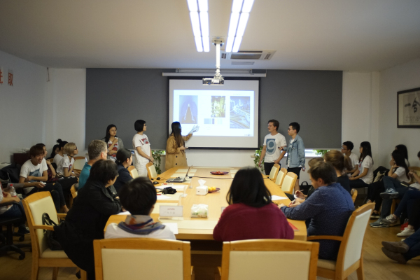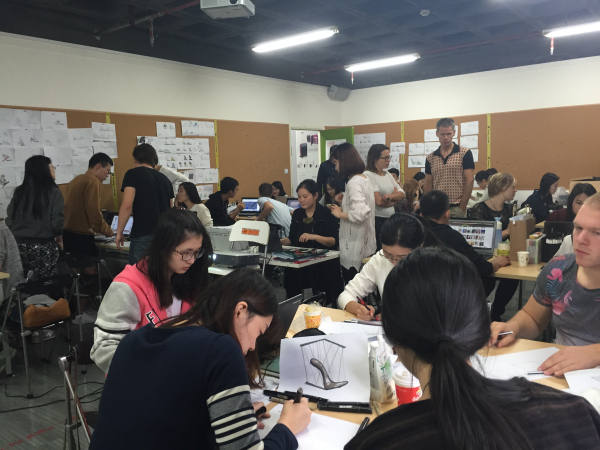 我们一同参观了1933老场坊,收集了众多关于“上海印象”的灵感图片,随后开始了节奏紧凑的脑力激荡,把灵感图片转化为一个个的方案,通过手绘草图的方式表现出来,在小组讨论中创造更多的新想法。鹿特丹的老师们也会给予小组一些专业的意见,帮助他们更好地表现自己的创意。