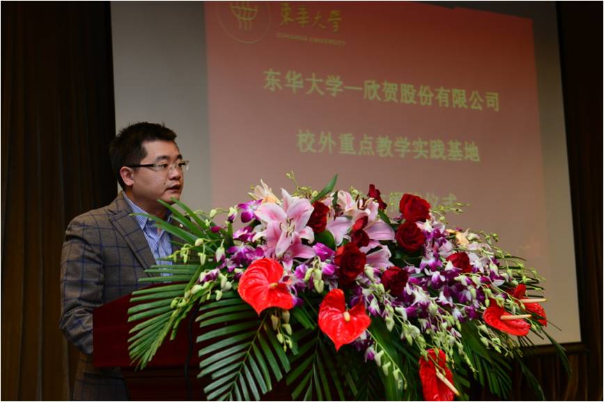 2015年12月9日下午,在东华大学延安路校区第三教学楼二楼演讲厅举行了东华大学服装与艺术学院—欣贺股份有限公司校外重点教学实践基地签约揭牌暨兼职教授授予仪式,东华大学服装与艺术学院院长李俊教授、副院长李敏教授、欣贺股份有限公司总裁罗永晖先生、人力资源总监宋晓芃女士出席了仪式,仪式由服装与艺术学院副院长李敏教授主持。