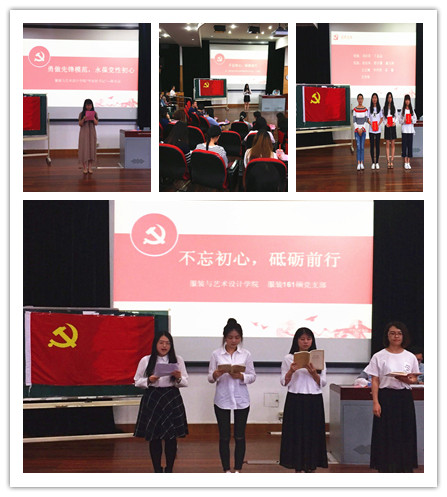 服装161硕党支部展示党员风采,朗诵 《共产党宣言》 、《沁园春·长沙》 、《少年中国说》 、 《习近平总书记系列重要讲话》节选内容,展现了一代又一代共产党人的理想信念追求和新一代青年朝气蓬勃、奋发向上的精神风貌。