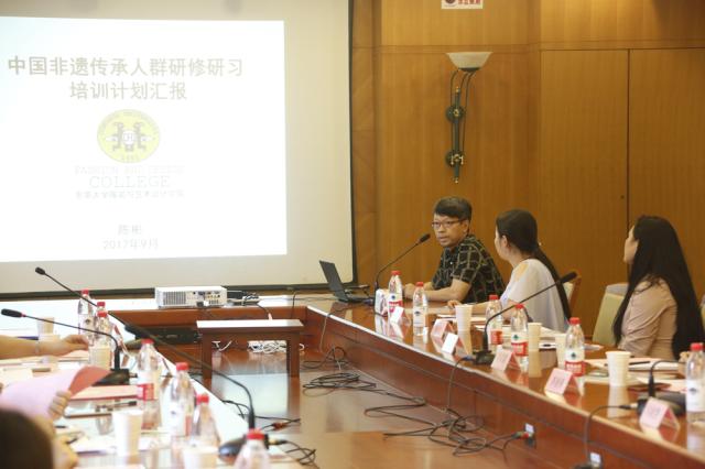 9月8日,中国非遗传承人群研培计划优秀成果展(上海专场)筹备工作会议在校举行,文化部初定成果展将于10月底在北京恭王府举办。校党委副书记刘淑慧,文化部恭王府博物馆中华传统技艺研究与保护中心主任孙冬宁,文化部非物质文化遗产司管理处龙柏羽,上海市文化广播影视管理局副局长尼冰、公共文化处(非遗处)处长杨庆红出席会议。我校必威国际官网客服电话是多少 院长李俊及上海大学上海美术学院副院长金江波、上海工艺美术职业学院继续教育学院副院长周星等兄弟院校同行出席会议。杨庆红主持会议。