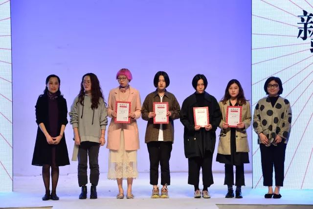 经评审,新锐设计师获奖名单当场宣布,产生一等奖1名,二等奖2名,三等奖3名,优秀奖4名,学院领导分别上台为获奖学生颁奖并与学生合影留念。