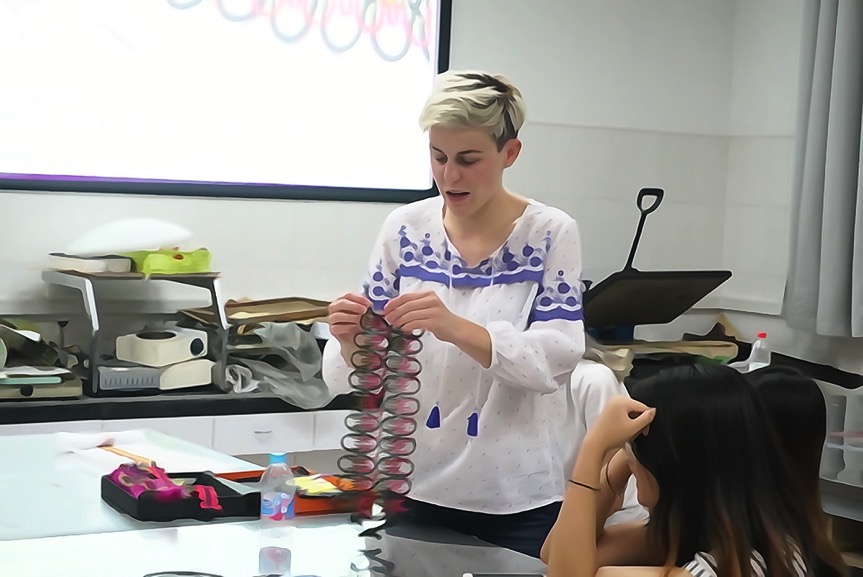 第一日的课程主要是织物的构成要素与梭织机的使用讲解。Elizabeth详细为每一位同学解释了梭织的概念,使同学们对梭织有了初步的认识的同时也对其产生了浓厚的兴趣。