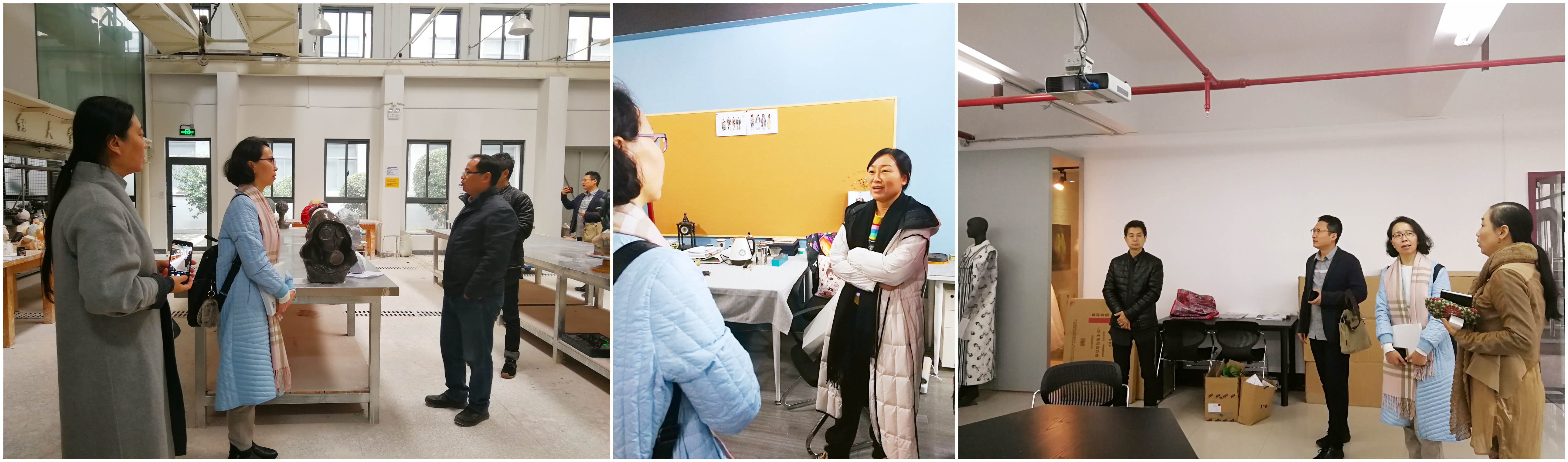 随后,在我院服饰系汪芳主任和实验中心陈春云主任的陪同下,国艺院代表团还参观了我院部分系部的工作室以及我院实验室,双方就工作室建设和实验室建设进一步交流。