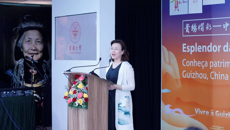崔运花在致辞中对里约州政府、巴西里约热内卢天主教大学、中共贵州省委宣传部为本次展演提供的大力支持表示感谢。她表示,学校坚持“以学生的全面发展与成才为中心”的办学理念,注重发挥学校特色优势开展必威软件优惠代码 、科学研究、社会服务、文化传承创新、国际合作交流等工作。作为非遗研培成果,本次展演展出的服装,既有东华师生与贵州非遗传承人合作创作,又有东华大学、贵州传承人和英国曼彻斯特城市大学三方合作创作的作品。作品风格各异,既融入传统刺绣等东方元素,又极具时尚和创意,通过东西方、传统和现代文化、理念的碰撞,突出传统技艺与现代设计的融合,把传统刺绣应用到现代服装设计和时尚产品中,使中国传统文化发扬光大。