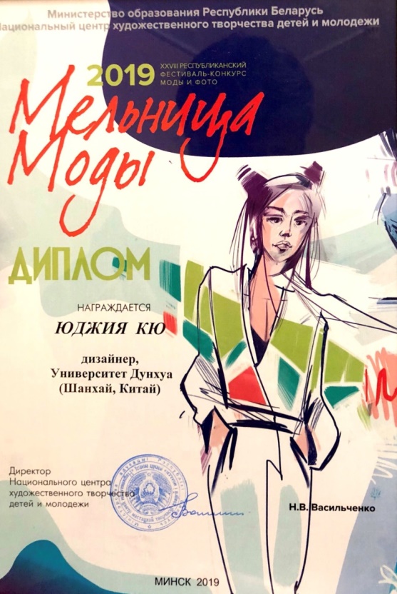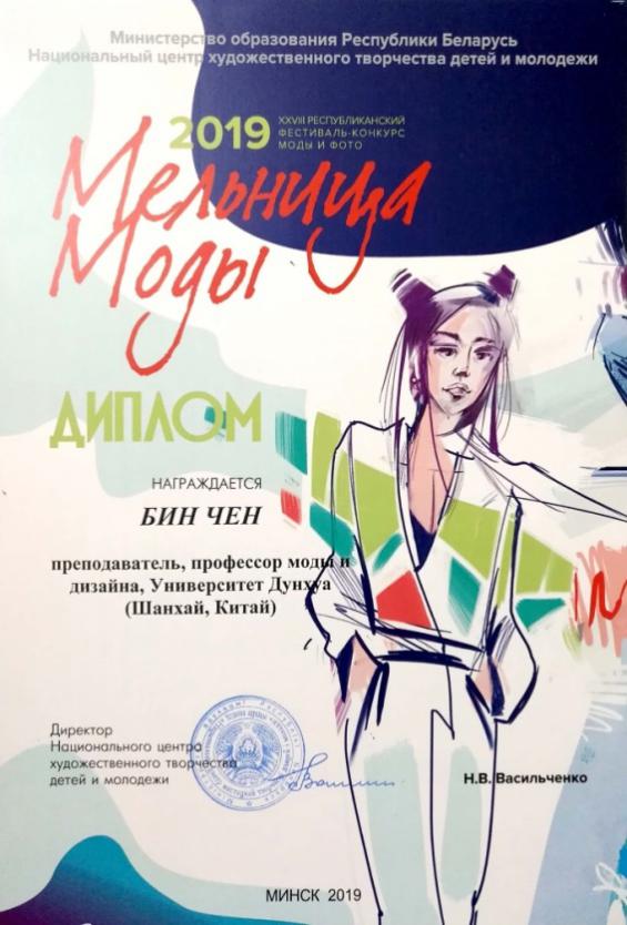 东华师生获得白俄罗斯教育部颁发的时尚磨坊节荣誉证书