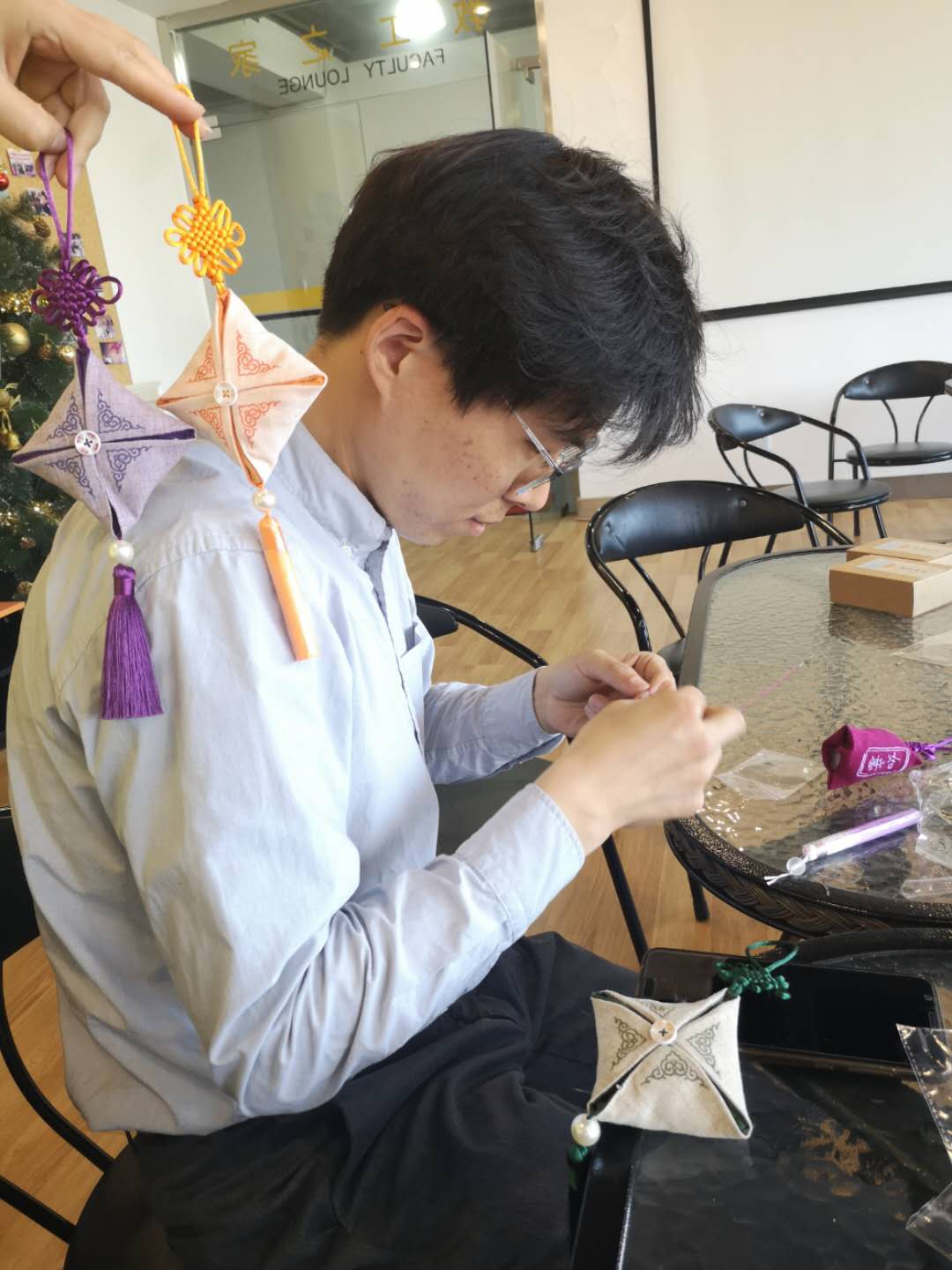 (香囊制作过程,教工欢笑多)