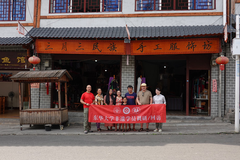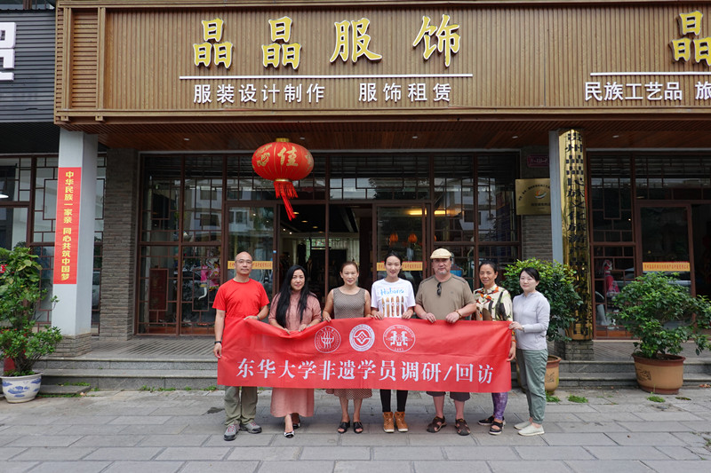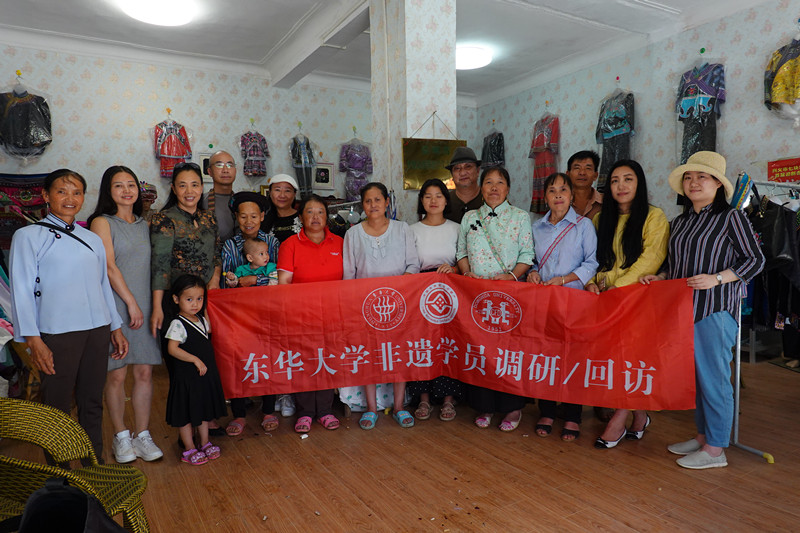 回访东华大学一期非遗学员韦建粉(右二)
