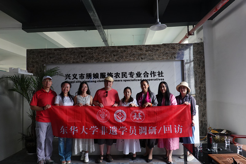 2019年7月25日至8月5日,手机博彩平台betway必威安卓版 非遗教育研究中心回访调研小组赴贵州进行第11次非遗学员回访和调研。本次回访重点关注黔西南州布依族学员,集中在贵阳、兴义、册亨三地共17位学员,他们是:贵阳的陈梅、马建容(遵义学员,得知老师回访,专程赶至贵阳)两位;兴义的韦建粉、郎正丽、郎正布、岑正花、查兰菊、苏朝青、王艺、岑开连、冯时素、张玉晶共10位;册亨的杨胜娇、罗龙英、陆美莲、岑建依、潘仕宜共5位。回访调研小组由冯信群副院长带队,非遗教育研究中心主任柯玲教授、业务教师傅婷及摄影师黄晓昭老师全程参与。回访小组还分别与贵州省文旅厅非遗处及非遗保护中心领导、兴义市非遗保护中心领导及贵州布谷鸟民族实业发展有限公司团队进行充分座谈和深入交流,分享了东华学员经过研培后所取得的喜人业绩和成功经验,共同探讨了今后双方深度合作的可行性和有效方式。