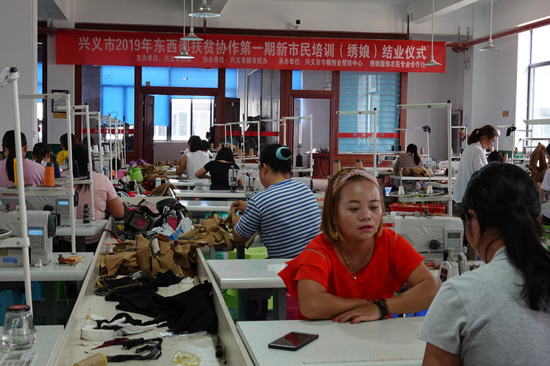 公司管理有条不紊、一派欣欣向荣的景象。冯时素在七块地时就上过央视、登过报纸,已经是一方名人了。冯时素的合作社,一边加工服装解决搬迁安置点的贫困户就业,一边对接政府非遗技艺的培训。合作社的订单主要来自广东等地,因为冯时素的良好的信誉和超强的协调能力合作社订单不断。而一期培训一般有50人左右,一周多的时间,培训合格的马上就可以接单,表现优秀者公司可以考虑留用。