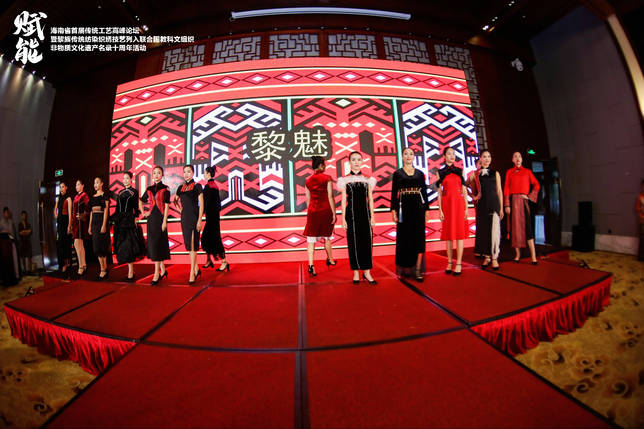 此次论坛活动的“黎魅”服饰表演通过精彩的活态展演,在展示了东华大学驻海南保亭传统工艺工作站建站一年的丰硕成果,也充分展现了现代美学与传统工艺的共存之态,本次设计将传统的黎锦与时装进行巧妙结合,色彩鲜艳的黎锦结合变化的时装廓形,丰富了黎锦的表达语言,充分展现了东华大学新锐设计师们的创意才华。