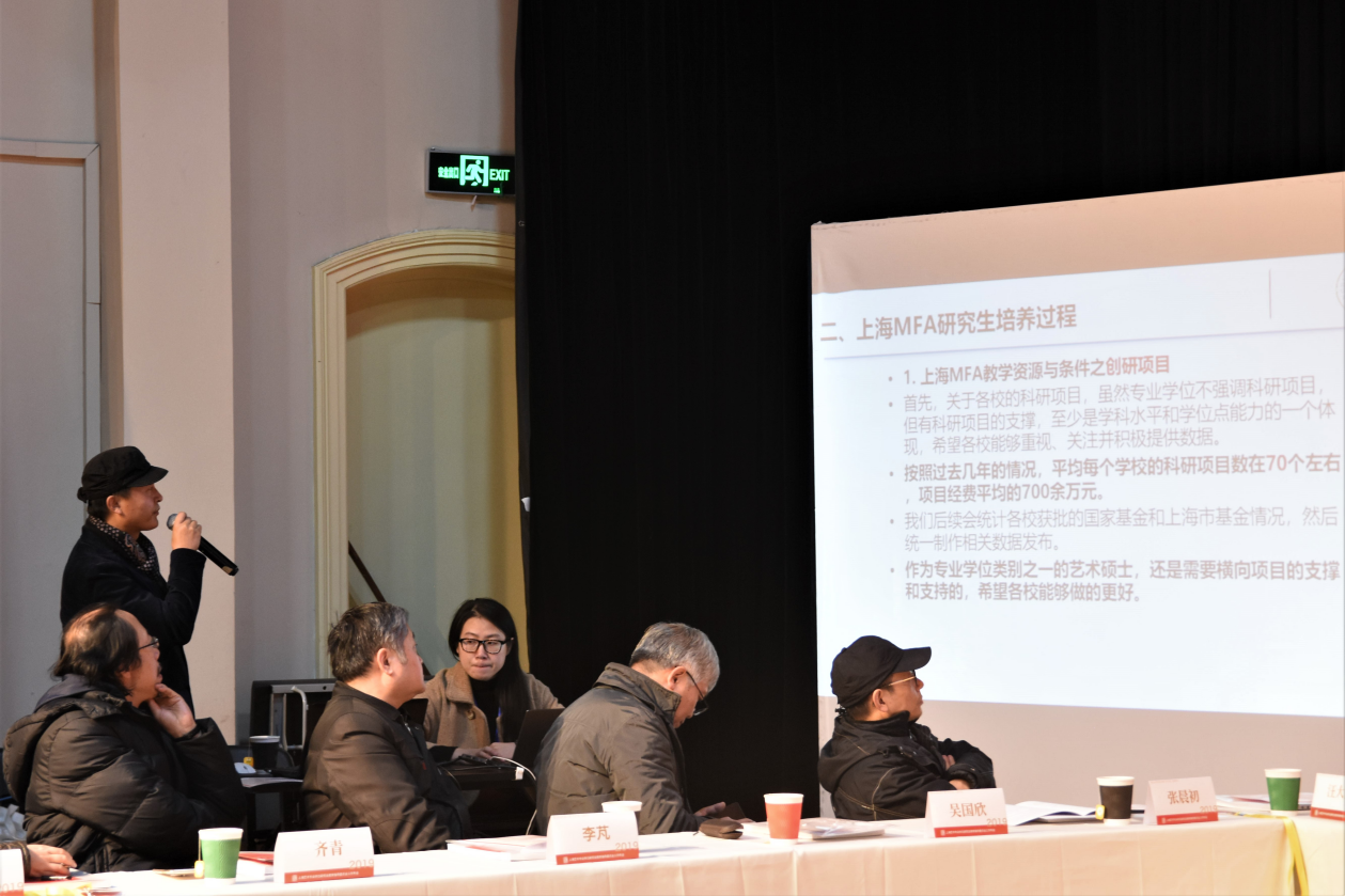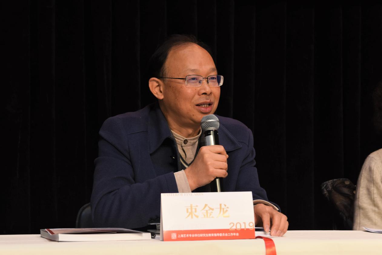 上海艺指委副主任委员张晨初教授表示,在最高领导的统筹下,2020年要尽心尽力、扎扎实实的做好相关工作;上海艺指委委员吴国欣教授提议艺术专业学位研究生的培养过程中应多做实际项目;上海工程技术大学艺术设计学院院长高瞩教授建议艺术专业学位研究生导师的选拔标准应灵活于学术型;上海应用技术大学艺术与设计学院院长林迅教授认为艺术专业学位研究生应将理论着重应用于实际;上海戏剧学院研究生部主任厉震林教授表示艺术专业学位研究生教育应因材施教,改善艺术专业学位研究生质量两极分化的现状。上海工程技术大学服装学院副院长胡越教授提议应该明确艺术专业学位研究生的论文盲审标准;上海艺指委委员许红珍教授表示,作为普通委员,她亲眼目睹了上海艺指委的不懈努力与坚持,深刻体会到上海艺指委存在的重要性,并对学校及上海艺指委领导的指导和帮助表示感谢;上海艺指委委员王远教授表示,上海艺指委从成立至今已经发展成为一支壮大的队伍,他认为艺术专业学位研究生应逐渐发展成为有体系、引领文化发展的主力军,期待大家继续支持艺术展览,使得高校力量有效服务于上海文化发展;上海艺指委委员韩生教授认为艺术专业学位研究生的门槛应逐步提高,培养质量需经得起历史与社会的考验;上海交通大学设计学院副院长韩挺教授指出上海交通大学艺术专业学位研究生教育当前处于探索阶段,期待各院校对交大艺术学科建设规模进行交流与探讨;上海艺指委委员王冬冬教授认为艺术专业学位研究生教育不仅要重视实践性,解决学术问题亦是十分必要的;华东理工大学艺术设计与传媒学院副院长于炜教授首先致敬上海艺指委过去五年为上海市文化发展做出的巨大贡献,为培养院校提供了平台和指导。其次建议院校间利用上海艺指委的平台错位互补,学科间协同发展。最后表示华东理工大学艺术专业学位研究生的培养质量逐步提升,同时面临双一流学科评估以及全国艺指委的新要求,应提高建设规模与水平。