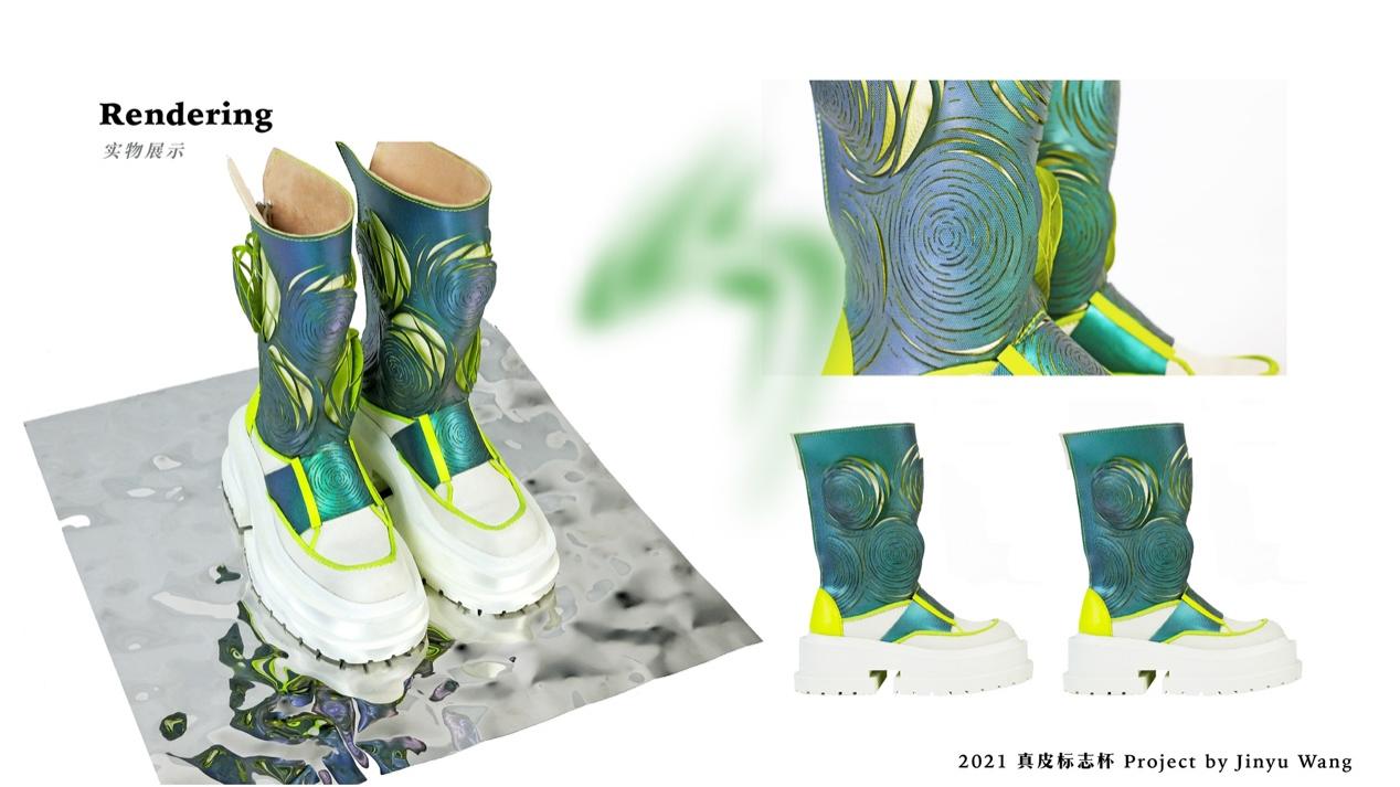 “这次真皮标志杯,我选择从Z世代的视角出发进行设计创作,这次不仅进行了款式的设计与制作,相比以往花了更多的时间在氛围的塑造与表达上,虽然疫情导致这次比赛中的答辩环节搁浅,但还是收获了许多,整个过程让我对鞋履的设计更加热爱,也对制作和视觉营销有了更多的实践。”