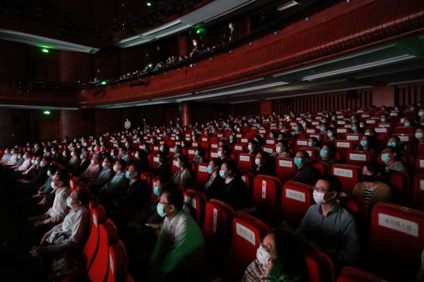 上海大戏院观众观看红色实验舞台剧《握手》