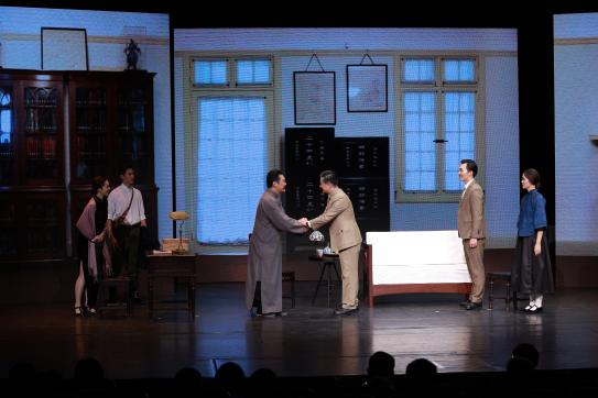 大戏院的舞台上,“李大钊”和“孙中山”紧紧握手。“香山路7号,第一次国共合作曾在这里酝酿。”实验舞台剧《握手》,就是通过舞台剧回眸历史,讲述了1922年8月,孙中山先生回到上海,在莫利爱路29号寓所,现在香山路7号上海孙中山故居,会见中国共产党代表李大钊,商谈国共合作的故事。在中国共产党人的支持和帮助下,孙中山形成了对中国革命问题的新的、唯一正确的看法,并由此开启了第一次国共合作的征程。