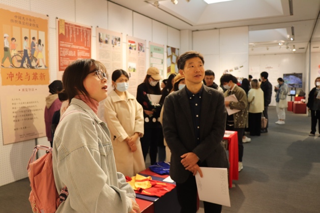 服装设计与工程系系主任张向辉老师提到本次课程通过对近百名的毕业校友进行采访和调研,使学生深入回顾了纺织服装产业以及东华大学建校的历史变迁。期间很多老师作为被采访对象,在采访中也回想起了读书时的场景,再次回忆起了以前的美好时光,十分感慨。感谢执教老师付出的极大热忱与19级服工学生用心呈现的展览精彩内容。