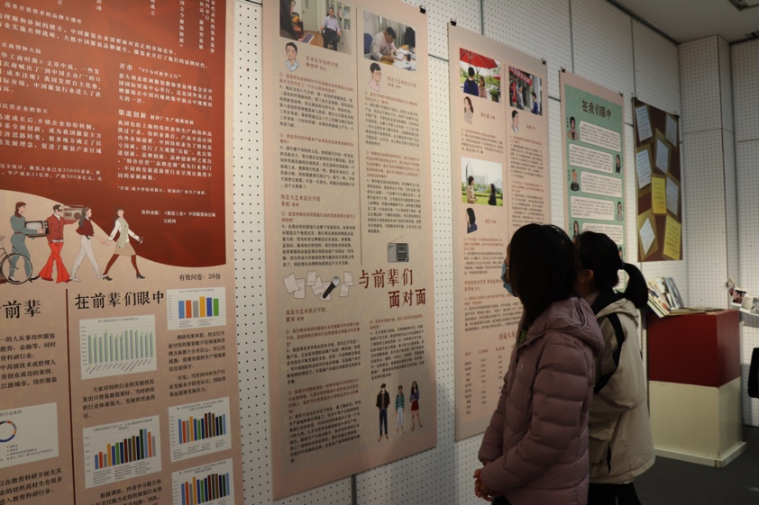 本次展览将课程理论知识、实践训练和课程思政相结合,时值东华大学建校70周年之际,组织同学们收集从建国以来纺织服装行业发展的历史数据和资料,走访从20世纪50年代至今不同时期的近百位东华校友,通过访谈和调研结果呈现了校友们对母校发展历程以及对行业经历的回顾,带来校友对母校深切的思念和浓浓的祝福。