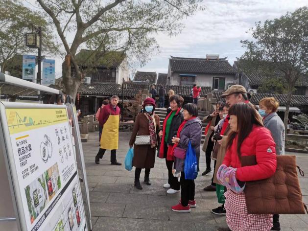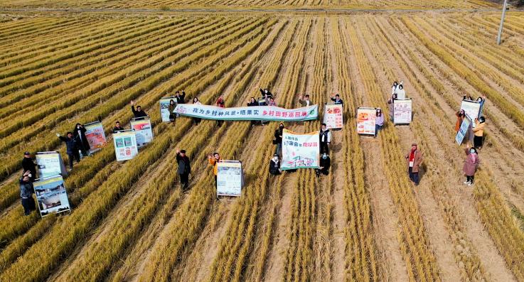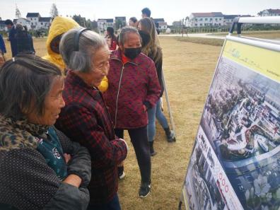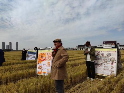 金秋时节、田间收获,2021年11月23日在手机博彩平台betway必威安卓版 副院长冯信群教授,环境设计系刘晓东教授,周之澄老师的带领下, “我为乡村种风景”入围作品赴金山,枫泾古镇进行乡种风景,晒果实乡村田野巡回展。乡亲们来到作品前仔细查看并询问着细节,设计者也在认真的给村民们解释作品的想法和创意由来,设计图纸成为了最好的纽带连接着青年设计师与枫泾百姓。