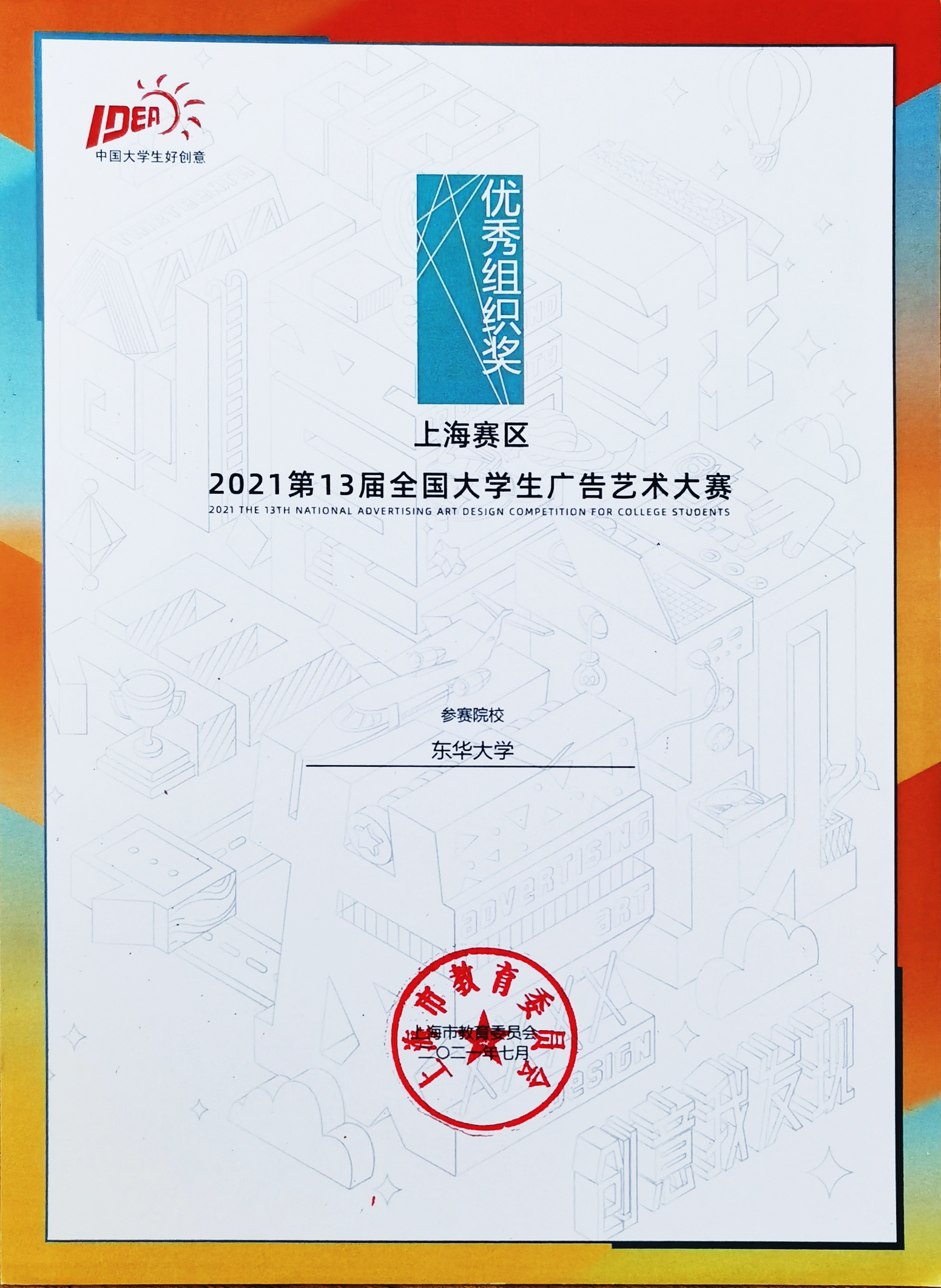 我校获13届全国大学生广告艺术大赛上海赛区优秀组织奖