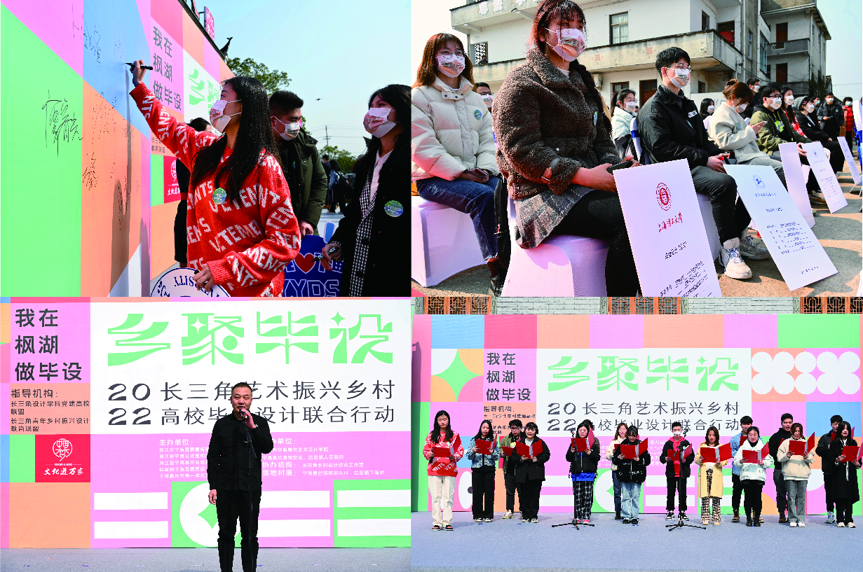 “乡聚毕设·长三角艺术振兴乡村高校毕业设计联合行动”由我院发起和承办,旨在响应国家乡村振兴战略、长三角一体化战略,鼓励更多的青年人才在乡村大地建功立业。在2022届本科毕业设计的时机,我院邀请长三角地区的江南大学、华东理工大学、南京师范大学、合肥工业大学、浙江工业大学、安徽大学等12所高校的100余名师生,以60个毕业论文和毕业设计的选题,聚焦于湖头村、下畈村的人居环境、产业振兴、社区更新、乡村文化等具体需求,以空间环境设计、产业系统设计、乡村服务设计、手作文创设计、数字乡村设计等具体课题,进入高校本科毕业设计的实践和研究范围。