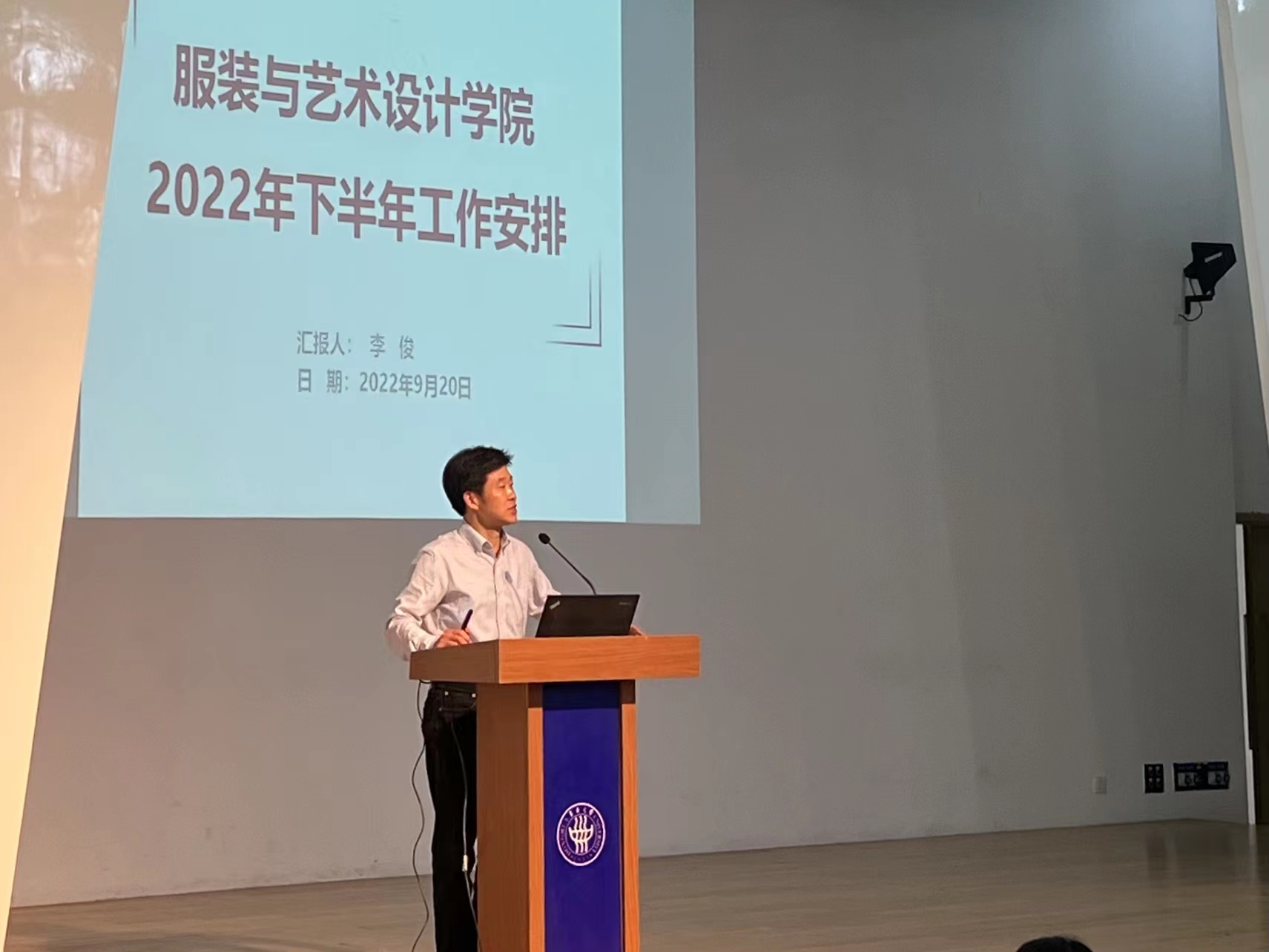 会上李俊院长紧密结合学校新学期工作部署以及要以习近平新时代中国特色社会主义思想为指导,围绕学院“构建以服装为龙头,以设计为主体的时尚学科生态链,建成国内领先、国际一流的以服装科技与时尚设计为特色的综合设计学院”的发展目标,部署新学期我院整体工作安排,分别就学校总体要求、学院党委纪委工作、学科建设、师资队伍建设、必威软件优惠代码 、国际合作、办学条件建设、科研工作、文化传承、社会服务工作等十个方面进行了介绍。针对今年国务院学位办和教育部发布的《研究生教育学科专业目录》,学院将组织研讨,认真思考总结学科的发展经验和特色,针对艺术门类学科目录的调整,谋划未来艺术类学科的发展定位。同时总结了本学期学院承担的2022世界设计之都大会(2022年9月15-18日)时尚设计板块的相关任务的完成情况。学院多学科老师协同工作,成功承办了主会场的时尚秀演“衣尚东方”、主场展览“经纬天地”时尚前沿展,获得广泛赞誉和好评。通过新学期工作安排部署,继续推动全体教职工围绕学院“十四五”规划和新一轮“双一流”建设目标奋进开拓、争取学院事业发展跨上新台阶。