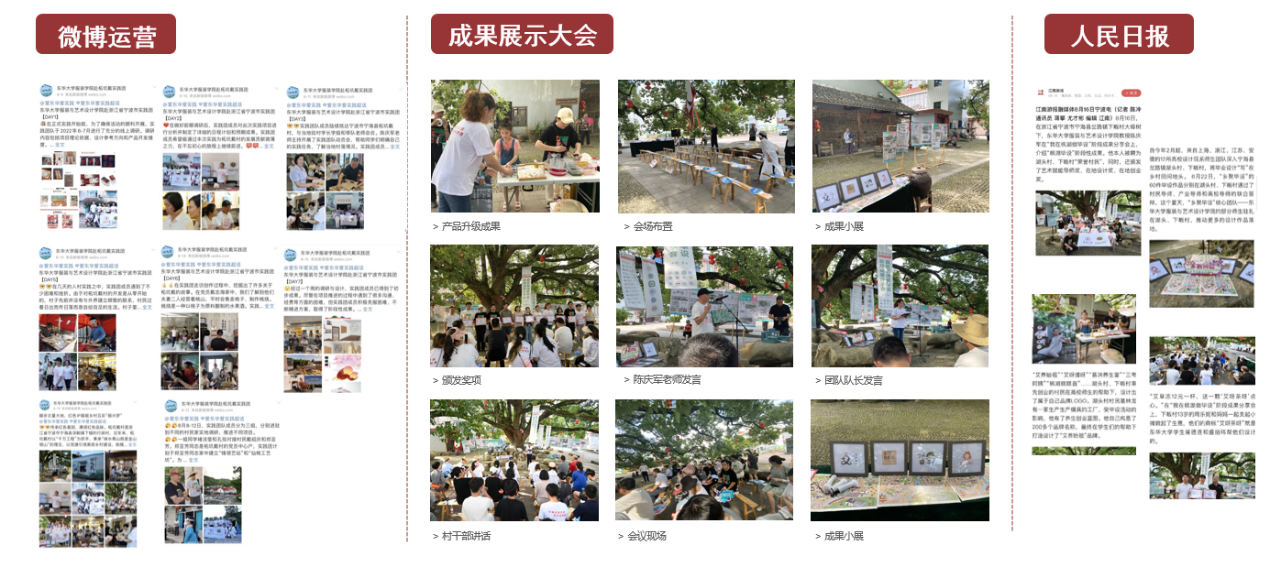 该项目产出“一条线”文旅线路、“六个点”文化站点、系列红色柘坑戴文创周边等实践成果,得到人民网、央广网、人民日报、光明日报、中国青年报等15家媒体发表20余篇报道宣传推广。村民对设计成果高度认可并为实践团举办实践成果展示大会,项目为柘坑戴的经济收益带来可观增长,“桃工坊”改造带来的销售利润较去年同比增长15%,村镇整体收益同比去年高出13%,外来游客数量增长35%,柘坑戴红色党建品牌传播效果明显。