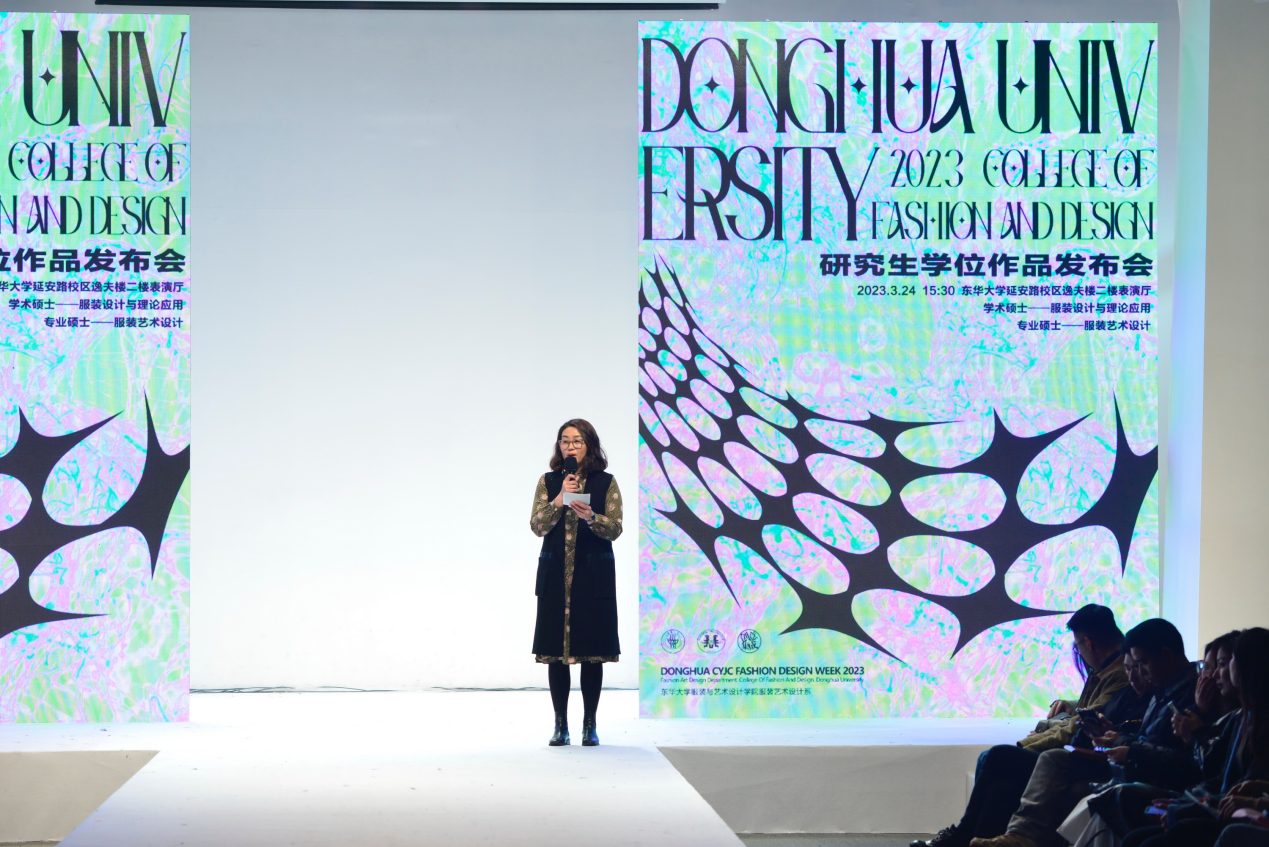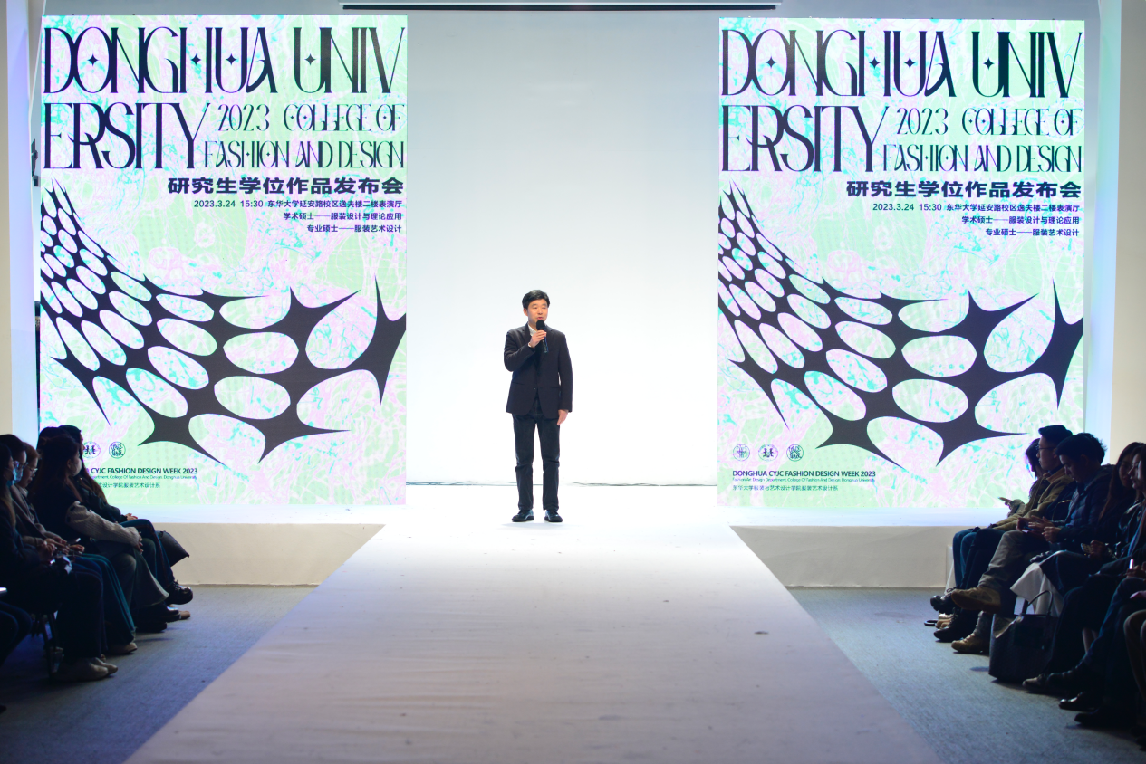 发布会由分管研究生工作的于晓坤副院长主持,对学院近期系列活动、研究生作品发布会简况以及出席嘉宾进行了介绍。随后李俊院长致辞,表达了对同学们的热烈祝贺,鼓励大家毕业后投入到美丽中国的建设当中,通过服装作品作为桥梁,更好的完成“美好学院、时尚大家”的使命,同时感谢各位家长、各位导师的精心培育,期待同学们开放创新,通过作品链接到社会,体现出“家国情怀”和“人类关怀”,成为社会的中流砥柱。