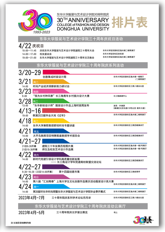 手机博彩平台betway必威安卓版30周年院庆是全体校友畅叙情谊、共谋发展的重要契机,也是学院赓续使命、展望未来的关键节点。学院将以“三十而立、三十而丽;美好学院、时尚大家”为主题,在4月22日举办庆祝大会、文艺晚会等,并在近期开展丰富多彩的系列庆祝活动。届时将根据活动场地等条件邀请安排部分校友参加现场活动,线上同步直播、云端展览等活动可供无法返校的学院校友广泛参与。
